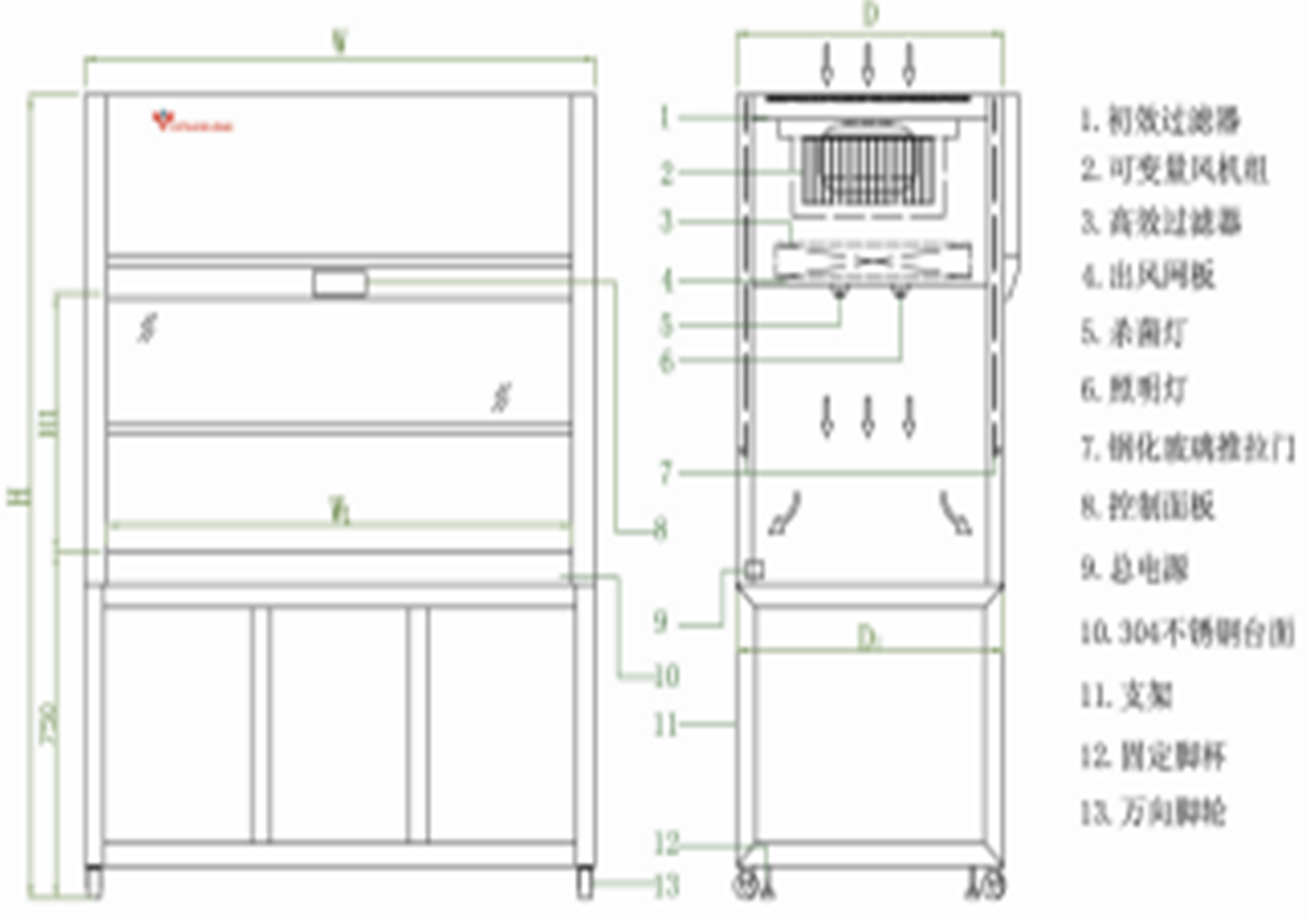 1.正压式过滤系统,垂直层流送风,防止操作室内部样品相互交叉污染。
